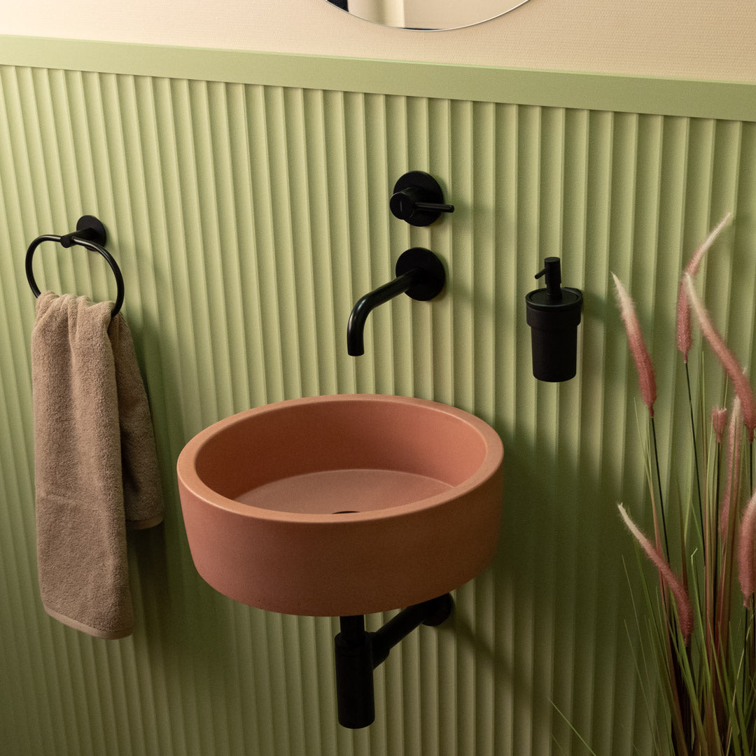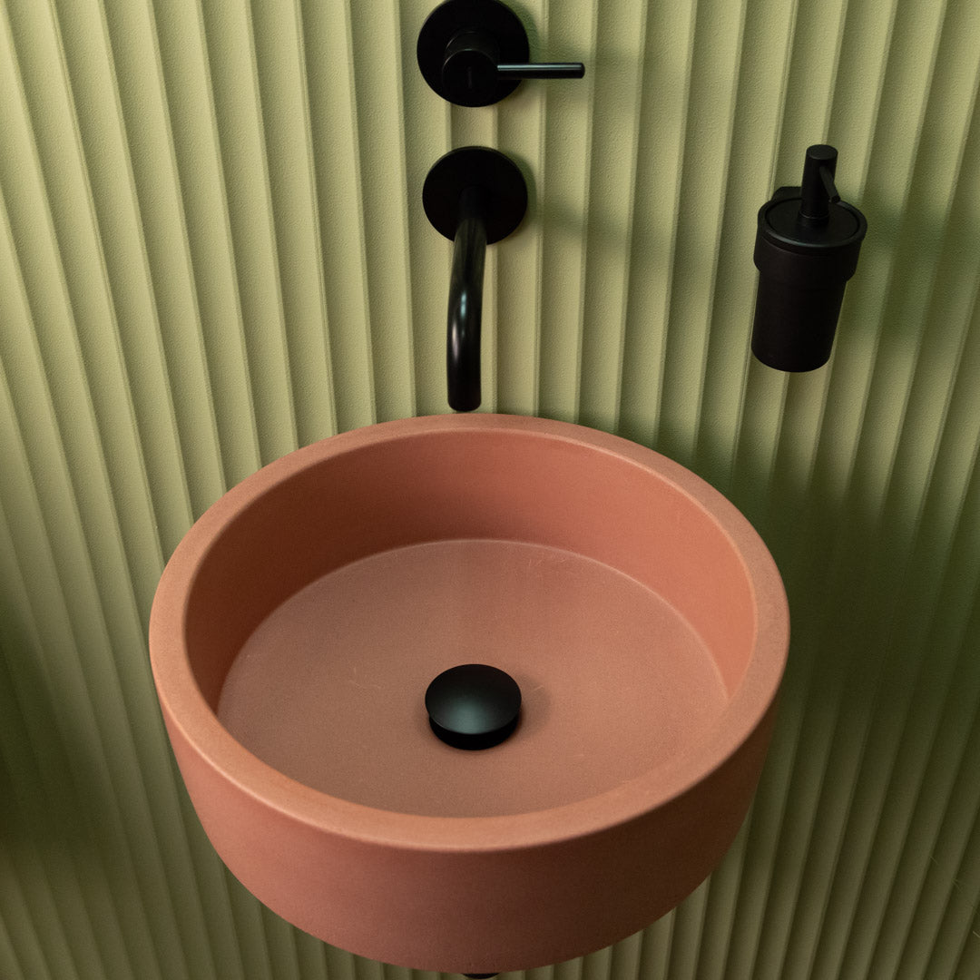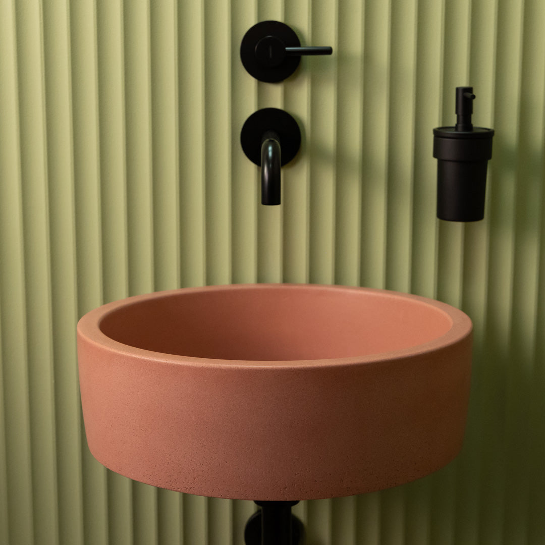Rankomis iš aukštos kokybės betono pagamintas apvalus praustuvas pasižymi švelniais kraštais ir glotnia matine apdaila, kuri tinka įvairiems interjero stiliams. Kiekvienas praustuvas yra unikalus, pasižymintis natūraliais atspalvių pokyčiais ir paviršiaus žymėmis, kurios pabrėžia jos rankų darbo pobūdį. Suprojektuotas taip, kad jį būtų galima lengvai sumontuoti ant stalviršio, jis pasižymi ilgaamžiškumu ir santūria elegancija kasdieniam naudojimui.